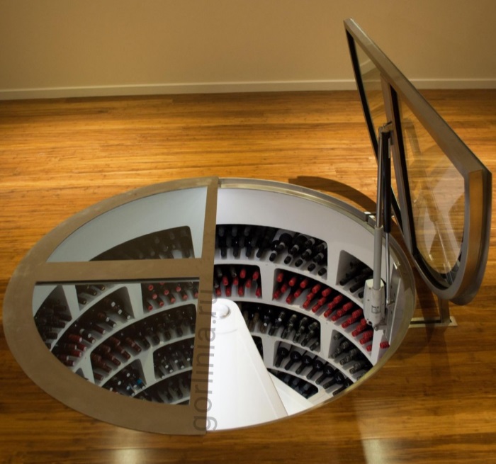 Контроллер и блок питания поставят в электрощитовой (при технической возможности) или оформят декоративной коробкой из-под вина непосредственно на верхней полке погреба. Вы открываете дверцу в полу однократным нажатием на выносную клавишу.