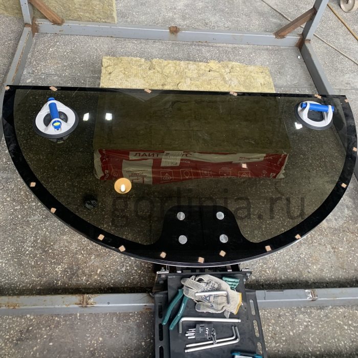 Светопрозрачное заполнение полотна: триплекс 32 мм 10/10/10 через ПВБ.