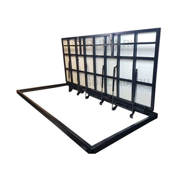 - Доступна однодверная модификация с системой ступенчатого включения пар газлифтов по мере перемещения дверцы в горизонтальное положение.