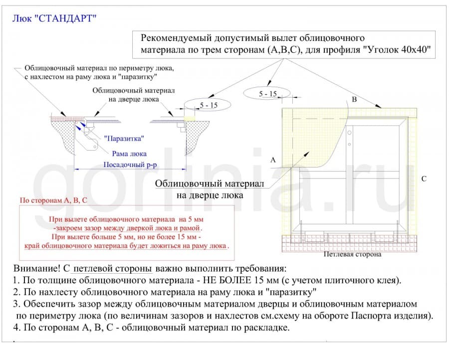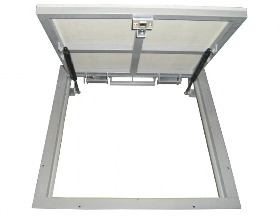 Люк напольный под плитку с амортизаторами АМО из стальной трубы 30х20 и сортового уголка 40х40 толщиной стенки 4мм. Окрашен в камере полимерной порошковой эмалью. Прошел сушку в высокотемпературной камере. Монтируется внутри помещений. Изделие оснащено газовыми упорами, внутренними петлями и личинкой замка с язычком. Тип открывания демпферной петли: откидной. На каркас двери прикреплен лист ГВЛвл под плитку (ламинированную доску). Закажите прямую доставку по России с производства!