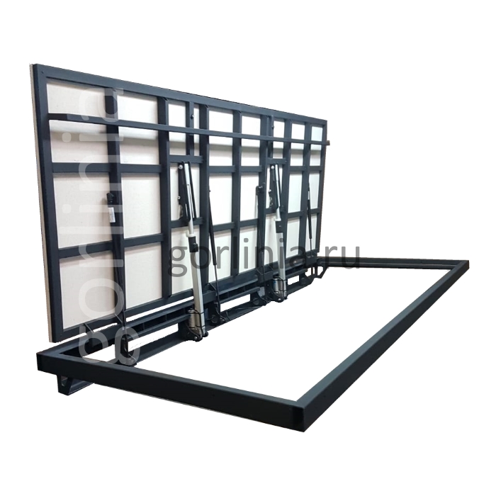 Каркас дверки 1440х795 с обвязкой и усилениями оборудован двумя парами направляющих скольжения штока на шпильках до верхней точки разгрузки привода со вспомогательными амортизаторами - догрузами (по решению конструктора).