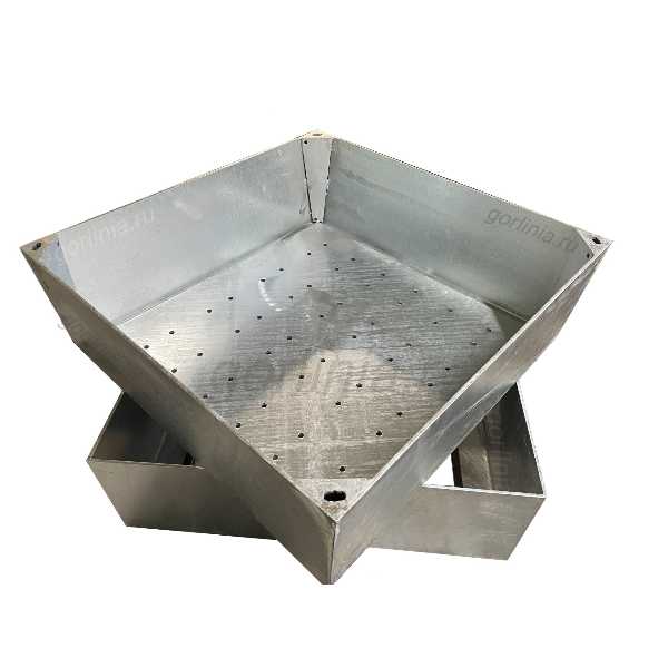 Изделие изготовлено из чернового проката 5мм с покрытием методом горячего цинкования в ваннах с расплавом цинка. Снизу в дне вырезаны дренажные отверстия D10 с шагом 70-100 мм для отвода вод от полива газонного покрытия и осадков.