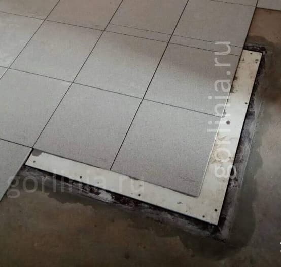 Облегченная модель прямоугольного размера без щелей в полу со смещенными за ось открывания петлями через вырезанные в раме ниши. Легкая ходовая часть на амортизаторах и удобный монтаж с облицовкой крышки керамическим или ламинированным покрытием.