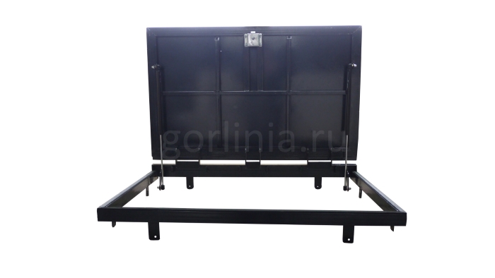 Рама без наличников выставляется в существующем отверстии 67*60 см с допусками, крепится в перекрытии через вертикальные пластины даже когда Ваш ремонт закончен и пол выложен керамогранитом или настелена ламинированная доска.