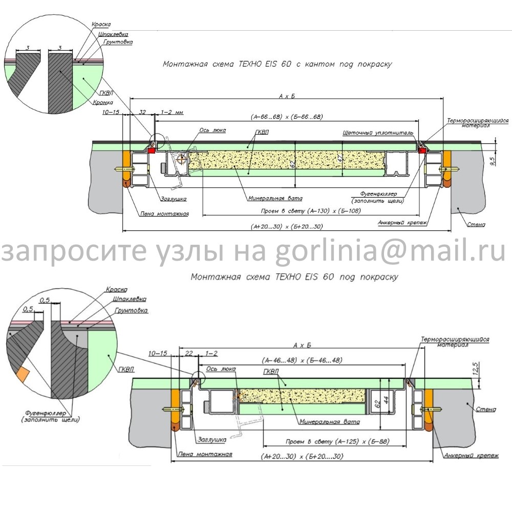 Монтажный размер скрытой коробки из алюминиевого профиля 600х1600х62 мм. Полотно 552*1552 заполнено 2-мя листами влагостойкого гипсоволокна "Knauf", внутри проложена минеральная вата. По контуру притвора в раме проклеена терморасширяющаяся лента.